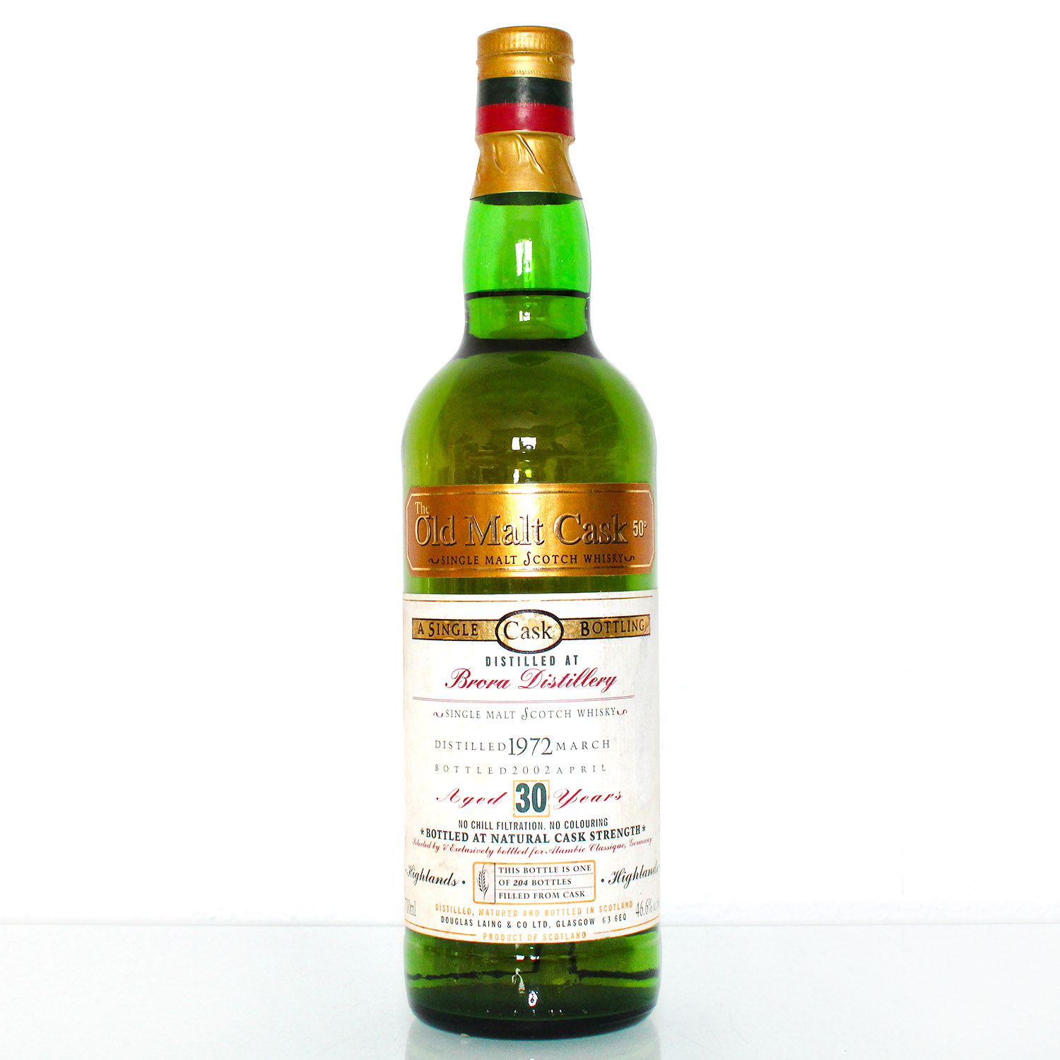 Brora 1972 30 Years Old Douglas Laing Old Malt Cask 46,6% ist eine hochkarätige Einzelfassabfüllung aus der geschlossenen Kultbrennerei Brora in den Highlands. Destilliert im legendären Jahr 1972 und nach drei Jahrzehnten Reifung von Douglas Laing in der „Old Malt Cask“-Serie abgefüllt, gehört er zu den seltensten und begehrtesten Brora-Abfüllungen überhaupt.
