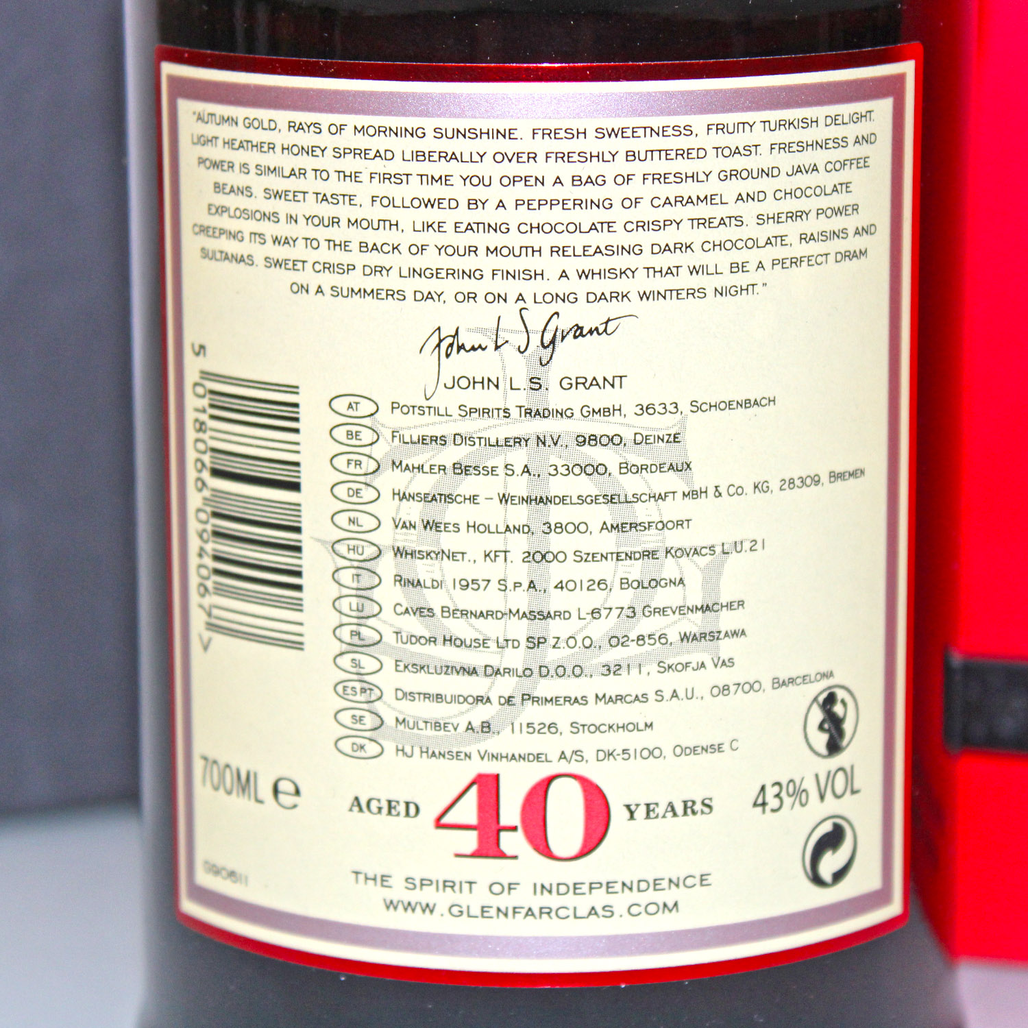 Die Verpackung dieser limitierten Sonderedition ist dem historischen Glenfarclas Warehouse nachempfunden – jenem Ort, an dem die kostbaren Fässer lagern und über Jahrzehnte hinweg ihren einzigartigen Charakter entwickeln. Mit dem Design wird nicht nur die lange Reifezeit gewürdigt, sondern auch die tiefe Verbundenheit der Familie Grant mit ihren Lagerhäusern, in denen Whiskygeschichte geschrieben wird.