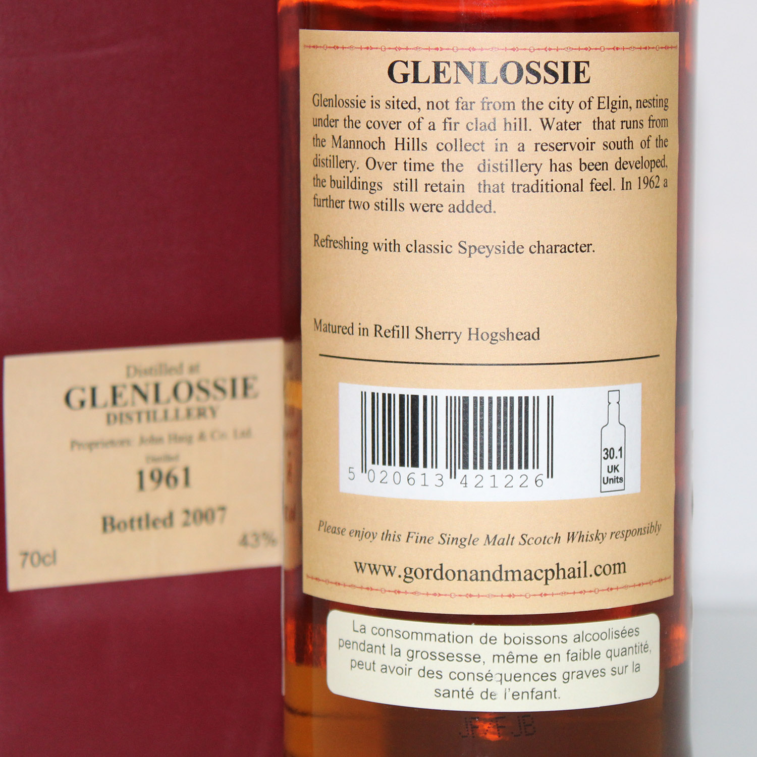 Der Glenlossie 1961 Rare Old Gordon & MacPhail Bottled 2007 gilt heute als geschätzte Rarität unter Liebhabern gereifter Speyside Single Malts. Besonders hervorgehoben werden die außergewöhnlich lange Reifezeit, die feine Balance sowie der elegante und vielschichtige Charakter dieser historischen Abfüllung.