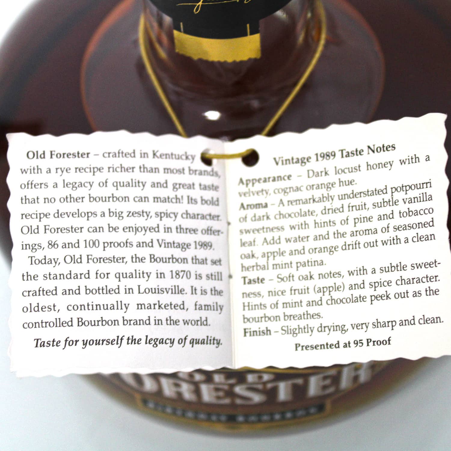 Am Gaumen zeigt der Old Forester Birthday Bourbon 1989 eine komplexe Textur, die süße Karamell- und Toffee-Noten mit elegantem Holz und leichten Gewürznuancen vereint. Der Abgang ist lang, harmonisch und hinterlässt ein warmes, intensives Gefühl. Durch seine seltene Herkunft und die außergewöhnliche Reifung bietet diese Edition ein unvergessliches Bourbon-Erlebnis für Kenner und Sammler.
