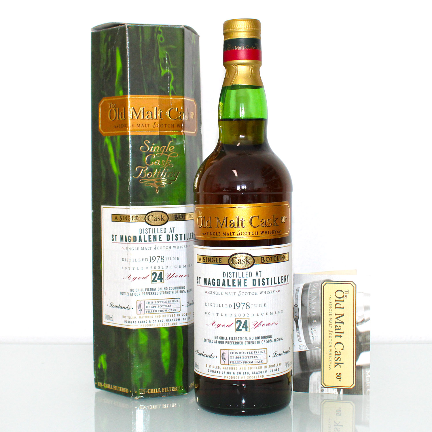 St. Magdalene 1978 24 Years Old Malt Cask aus dem Hause Douglas Laing ist ein seltener und ausdrucksstarker Single Malt, der die besondere Handschrift einer längst geschlossenen Lowland-Destillerie trägt. Über 24 Jahre Reifezeit haben diesem Whisky eine beeindruckende Tiefe und Eleganz verliehen. In der Nase entfalten sich feine Aromen von reifen Äpfeln, getrockneten Früchten und süßem Malz, begleitet von einer dezenten Kräutrigkeit und sanften Holznoten. Am Gaumen zeigt er sich ausgewogen und vielschichtig mit Anklängen von Honig, Toffee und feiner Eichenwürze, ergänzt durch eine subtile, trockene Note, die dem Whisky Struktur verleiht. Der Abgang ist lang, warm und harmonisch, mit anhaltenden Fruchtnoten und einem eleganten, leicht würzigen Nachklang. Diese Abfüllung ist ein authentisches Zeugnis traditioneller Lowland-Brennkunst und richtet sich an Kenner und Sammler, die die leisen, komplexen Töne gereifter Whiskys zu schätzen wissen.